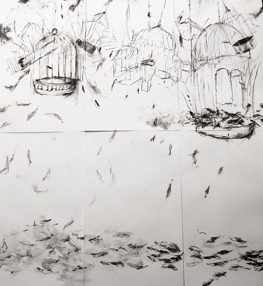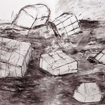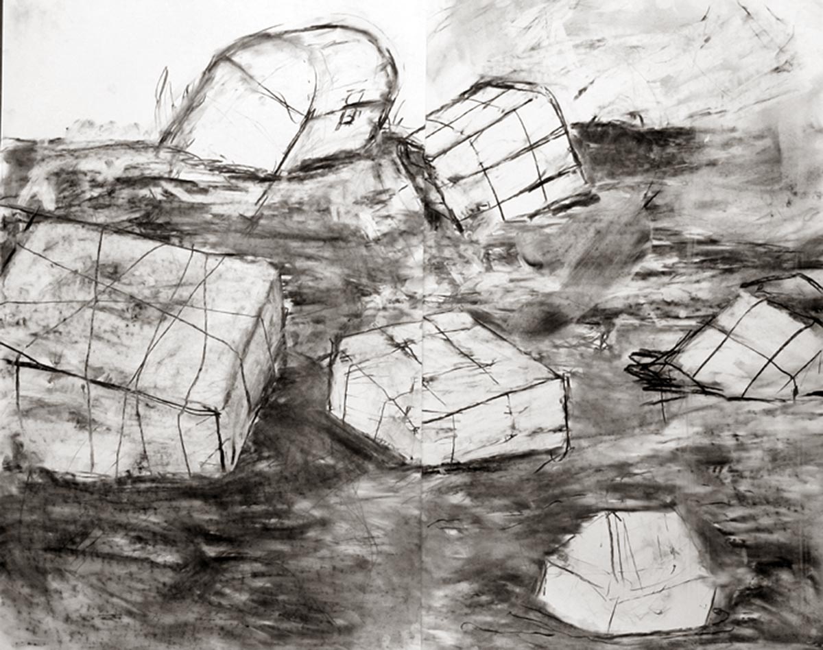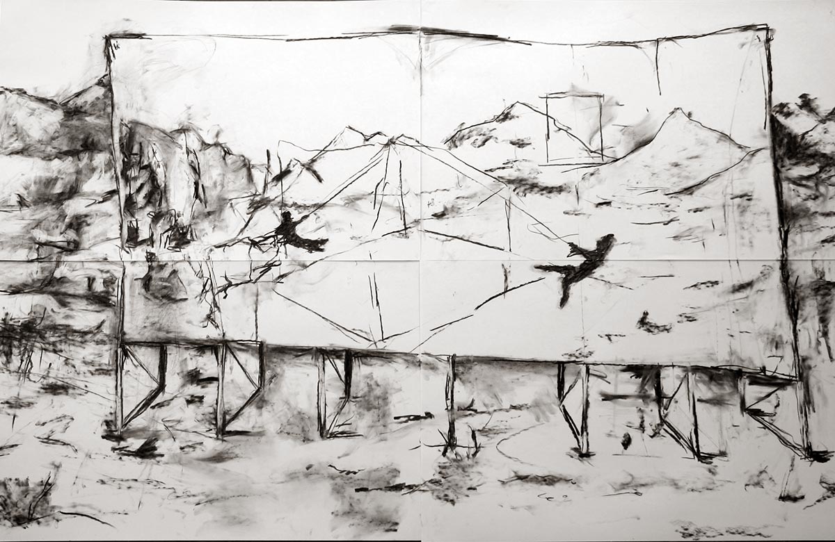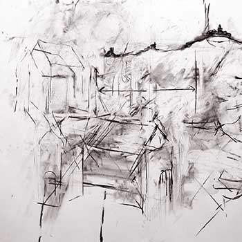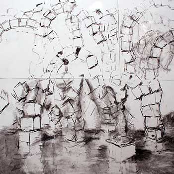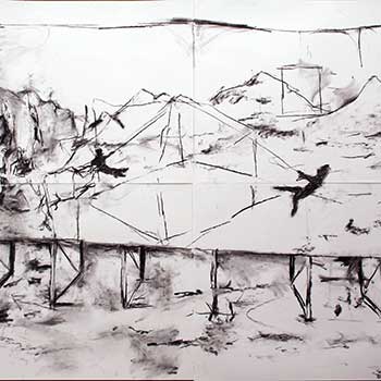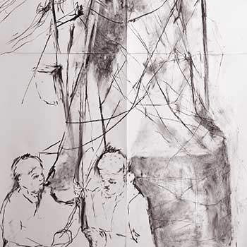 A visual conversation of working on separate drawings and then alternating after a given time. Concession was given to enhance or completely erase each other’s drawing, the process continued, switching back and forth, until the drawings appeared 'finished'.