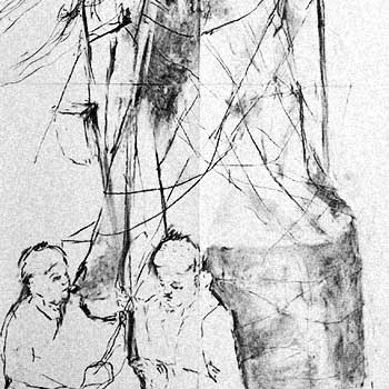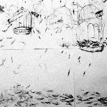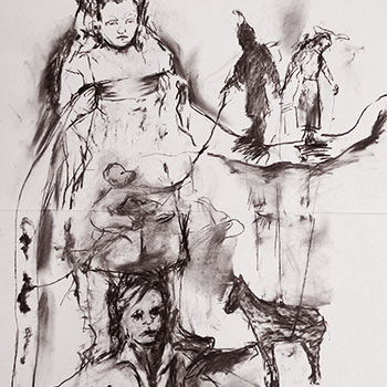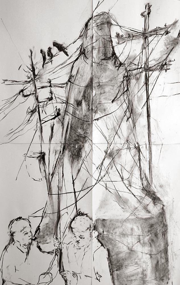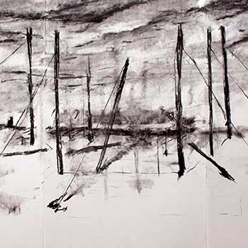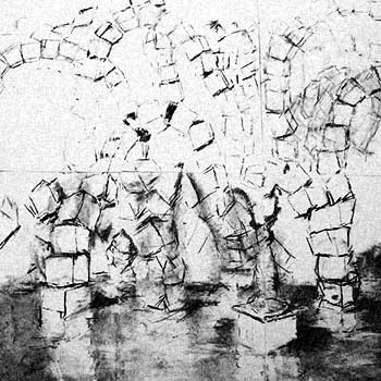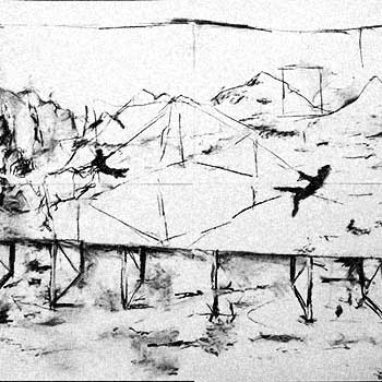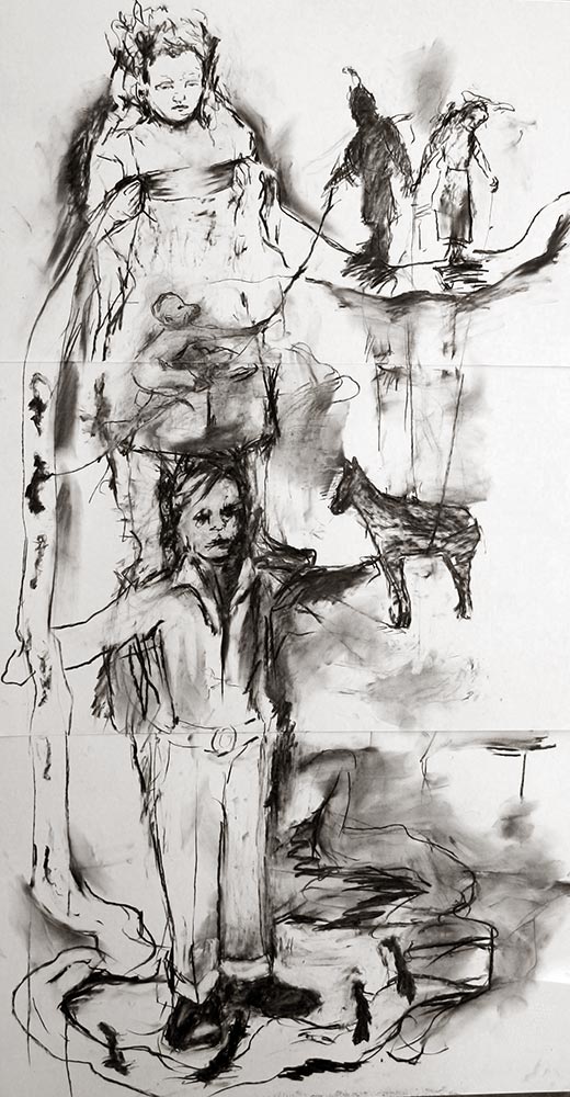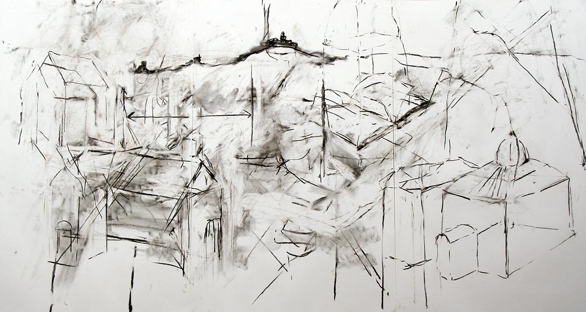 A visual conversation of working on separate drawings and then alternating after a given time. Concession was given to enhance or completely erase each other’s drawing, the process continued, switching back and forth, until the drawings appeared 'finished'.