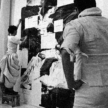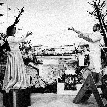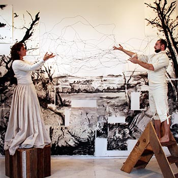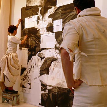 Using the work of the Hudson River School as a starting point, chiandetti-kuhn have reflected on themes of discovery and exploration in a variety of media to research and pay homage to this group of 19th Century American painters. Their interest lies in the notion that many of the works by these romantic artists are not exact reproductions of the region, but are in fact composites the artists would have made from various preparatory sketches and imaginary sources for the psychological effect they desired. In the same manner that an image can be composed or put together, it can also be simultaneously collapsed or pulled apart. Around the performance “The Things That Disappear in the Distance” c-k have created a series of other works that inform their process. Throughout there has been a focus on a “study from nature” as well as a dialogue between interior and exterior space, memory and place.
