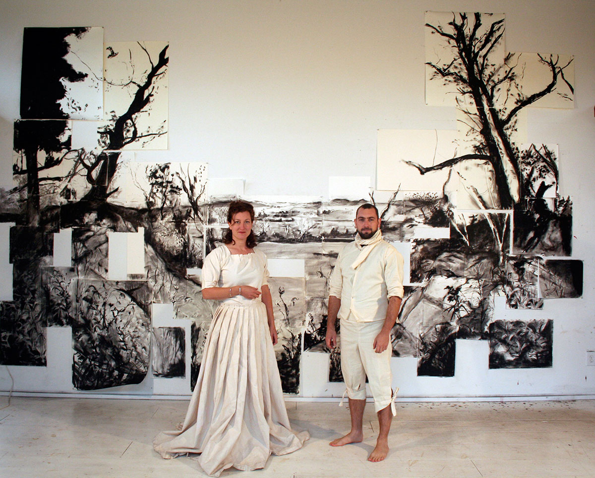 Stage Charcoal, paper, costumes, wire